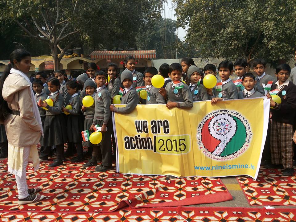 They continually campaign to demand that the Indian government honour their promise to allocate 6% of GDP to education and 3% to health - hence 'Nine is Mine.'